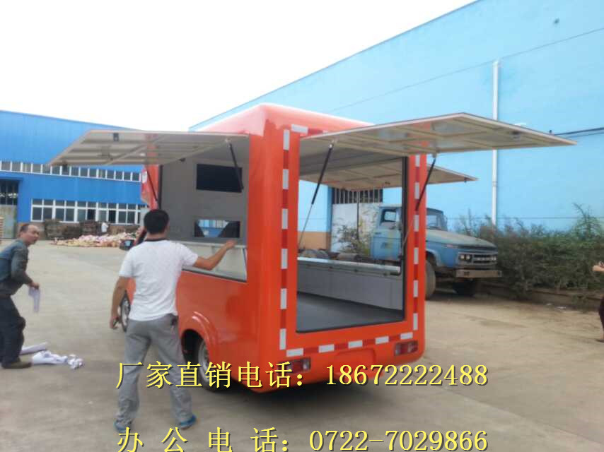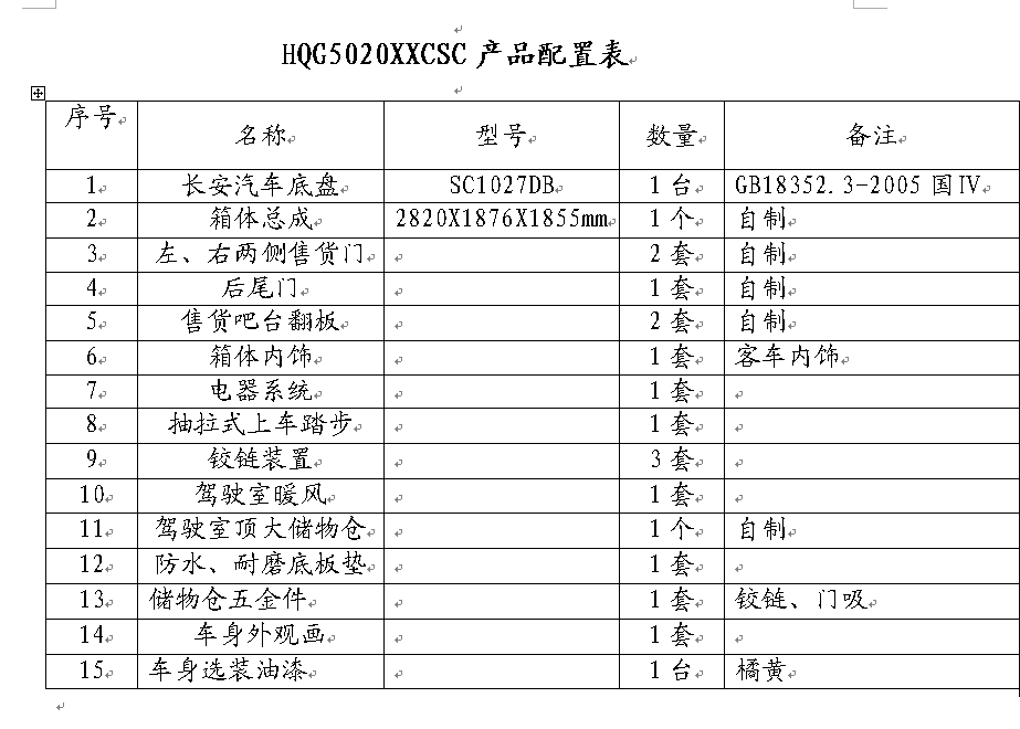 1.車廂頂部封閉選裝通風窗時,高2590mm;選裝頂置空調時,高2890 mm.2左右兩側及后部均可選裝led屏、廣告滾軸燈箱、玻璃窗或上掀門。3.該車前部頂端兩側裝有喇叭,可進行聲音宣傳.4.該車裙邊工具箱艙門可選裝.5.側部和后下部防護裝置為鋼板整體式側圍防護結構,離地高度300mm,側部和后下部防護裝置材料材質為Q235A.發動機型號/最大凈功率(kw)分別為:JL466Q1/46.56;6.可以選裝不同車體顏色和外觀貼畫.
