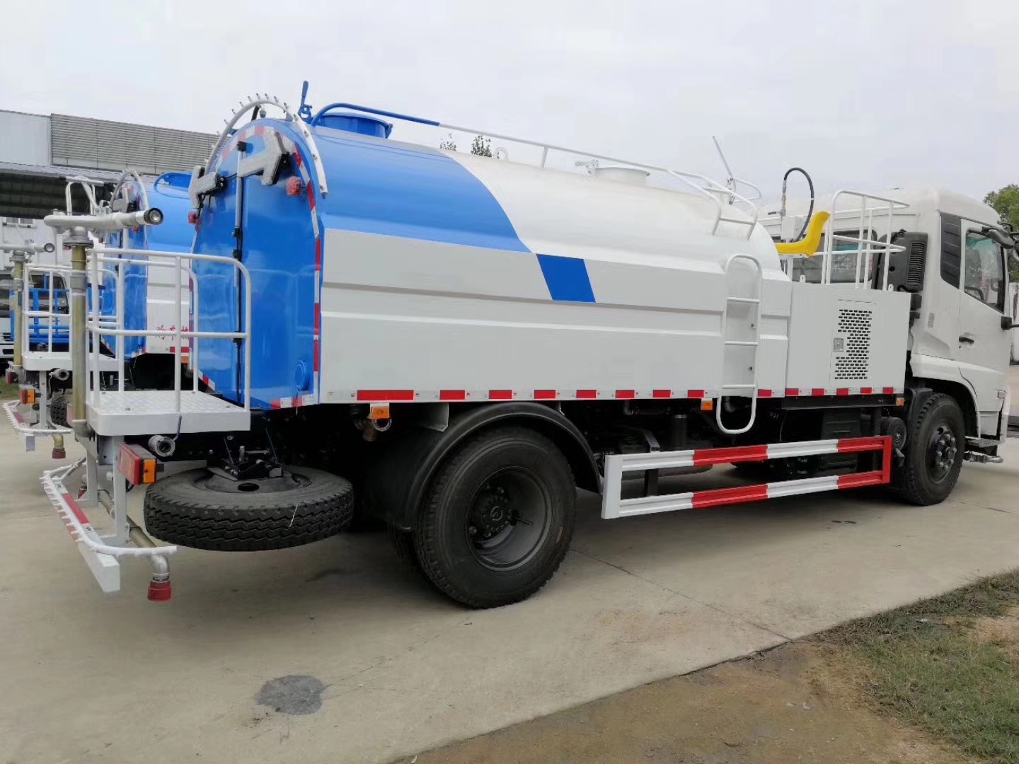 程力專用汽車股份有限公司,國(guó)內(nèi)最大的專用汽車生產(chǎn)廠家,其公司主要生產(chǎn)市政環(huán)衛(wèi)車輛。2017年11月12日,江西省九江市廬山市環(huán)衛(wèi)處李主任一行前往我公司實(shí)地考察,此次廬山環(huán)衛(wèi)處打算采購(gòu)兩臺(tái)路面清洗車,李主任提出車輛必須一車多用,既能路面清洗,也要配合園林綠化,還要路面降塵作業(yè),必要時(shí)還可以充當(dāng)消防車使用。根據(jù)李主任提出的要求,特推薦我公司專利產(chǎn)品,東風(fēng)天錦多功能路面清洗車。