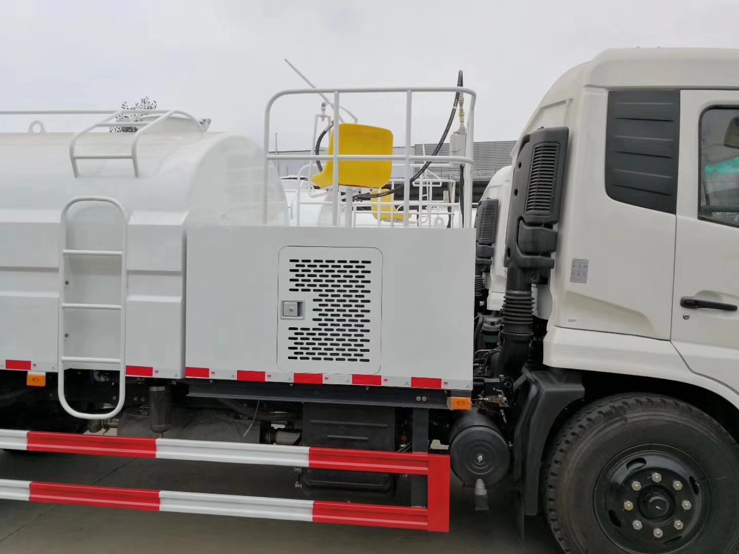 高壓水槍操作臺(tái),可供專人作業(yè),配備安全椅,手持噴槍,可清洗一些車輛無(wú)法到達(dá)的地方(例如陰溝,人行道等) 可選裝: 1、 液壓升降平臺(tái),適用于清洗及維護(hù)公路的空中設(shè)施; 2、 護(hù)欄清洗刷,適用于清洗公路護(hù)欄; 3、 推雪鏟,適用于公路除雪。 |