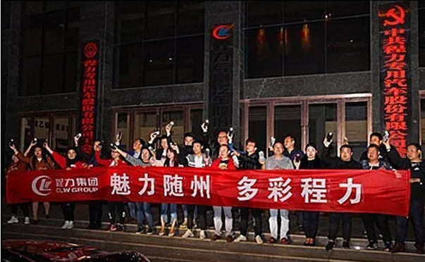 大概八點半的時候,CLW初見雛形,大家都進(jìn)自己的車內(nèi)試燈光和雙閃,希望在航拍的時候出現(xiàn)最佳效果。屏上顯示,這個C呢有點小,把弧度再稍微調(diào)大一點,還差一輛呢,這時,程總給了我們最大的支持,調(diào)動了自己的瑪莎拉蒂來壓軸,非誠勿擾的音樂想起,大BOSS在最后出場了。 一切準(zhǔn)備就緒,關(guān)廣場燈、車燈,一切恢復(fù)到夜的靜謐。隨著航拍指揮楊總的口令,大家逐一打開車燈、雙閃燈,23臺車主的齊心在此刻彰顯更明,也照亮了此時的夜。9點楊總表示航拍取景結(jié)束,大家下車在辦公樓前排好隊拉開橫幅,喊出了此次的活動口號:天王蓋地虎,程力最威武,確認(rèn)過眼神,都是程力人,哄亮的吶喊喊出了大家熱愛生活的心聲,也預(yù)示著此次活動驚艷的前奏已奏響。 我們程力人用最特殊的方式打響了新時代-互聯(lián)網(wǎng)新生代抖音APP展現(xiàn)自我的頭炮,后期各色的show time都會一一登場,讓我們拭目以待。 此次活動特別感謝湖北程力集團(tuán)公司高層及各員工的支持,還有自媒體大咖----隨州虎福瑞食品公司總經(jīng)理楊歡、隨州抖音俱樂部會長胡夢圓女士的友情相助和鼎力支持。