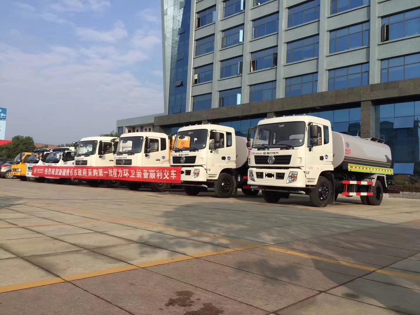 新疆博樂市政府采購湖北程力公司第一批環(huán)衛(wèi)車順利交車
