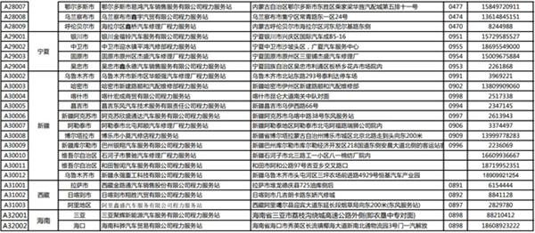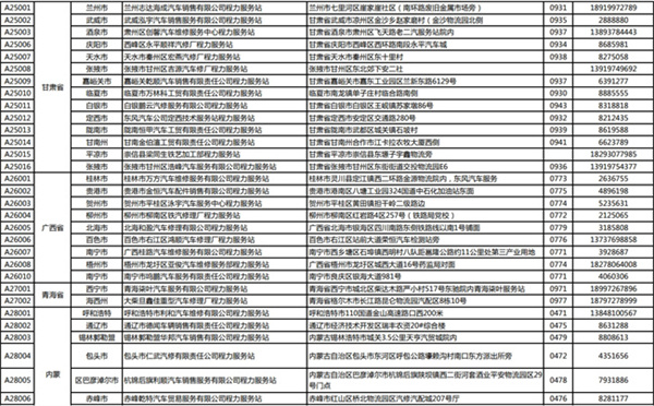程力專用汽車股份有限公司(程力威)牌專用汽車全國服務(wù)站名錄