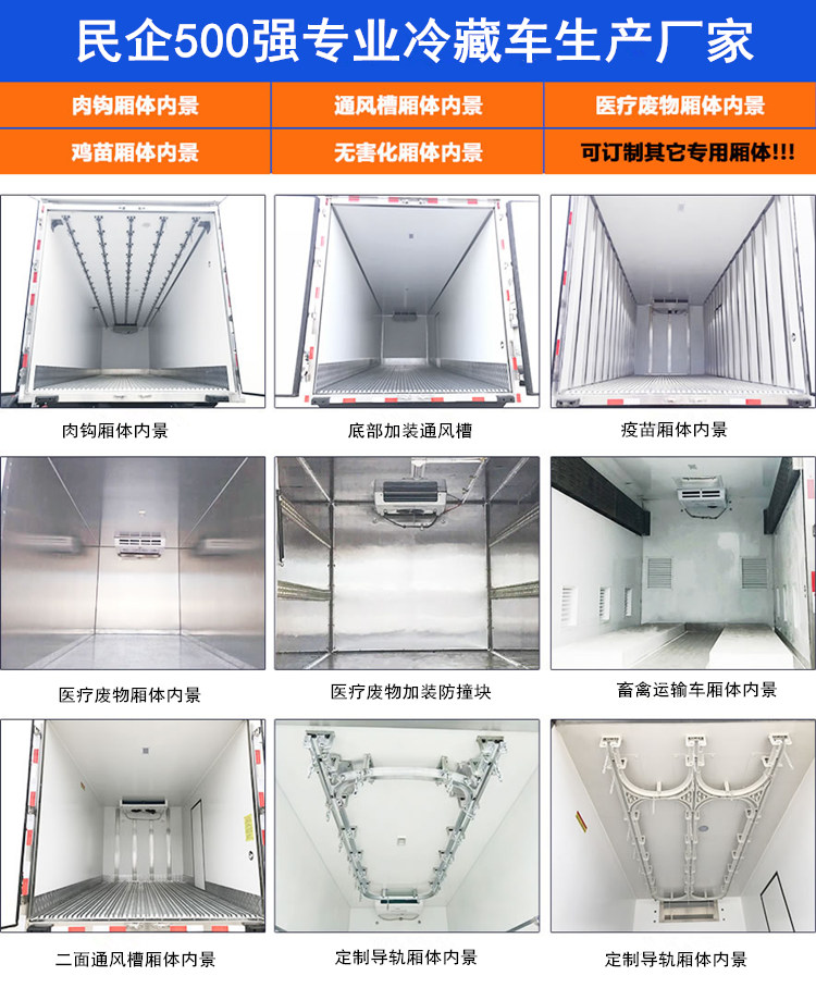 歐馬可 4.2米冷藏車具有制冷快、持續時間長、保溫效果好等特點,是您進行中長途運輸的不二選擇。歐馬可 4.2米冷藏車保溫箱采用三明治結構,內外采用冷藏車專用玻璃鋼(可反射陽光可選用不銹鋼),中間保溫層采用聚氨酯發泡隔熱材料,18米罐注一次成型,產品重量輕,漏熱率(導熱系數)低,強度高,保溫效果好,廂體美觀大方扎實耐用。廂體厚度8CM.廂體全為不銹鋼鎖件,鋁合金包角,廂體可選裝通風槽、開側門等。根據需要可選裝配國內外知名制冷機組(溫度達到保鮮或冷凍要求),可根據您的需求進行定制生產。