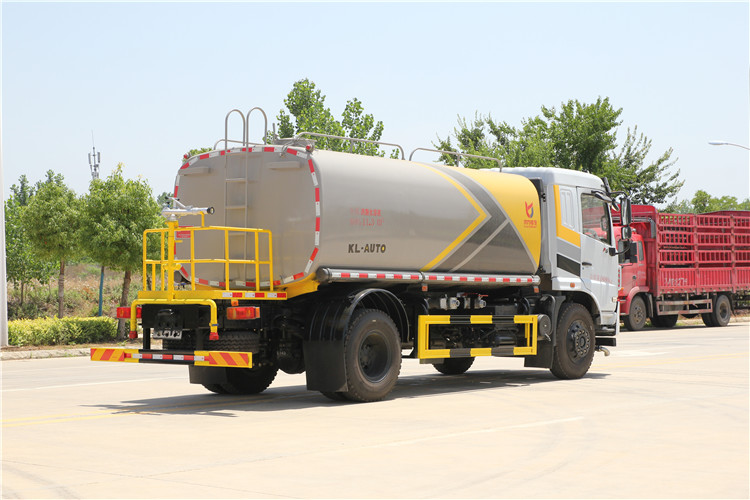 采用大流量水泵60-90,基本灑水功能前沖、后灑、側噴、工作平臺帶高炮(可調節成霧狀、直柱狀)、可泵進泵出、罐體兩側炮筒、帶兩根抽水軟管,上裝標配,罐體自動焊,大梁不動焊