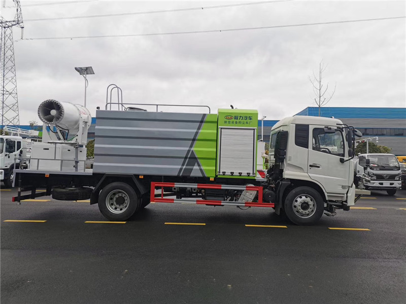 湖北程力國六東風(fēng)天錦60-100米抑塵車(方罐)程力威牌CLW5181TDYD6型多功能抑塵車廠家配置: 湖北程力國六東風(fēng)天錦抑塵車底盤配置:底盤采用東風(fēng)天錦國六底盤,公告型號:CLW5181TDYD6,康明斯6缸ISB210馬力發(fā)動機,4700軸距,275真空胎,6檔變速箱,原裝空調(diào),ABS。 湖北程力國六東風(fēng)天錦抑塵車上裝配置:罐體容積11.3立方,罐體為方形罐,罐體內(nèi)部做防腐,罐體鋼板采用Q235碳鋼鋼材,整車具備灑水車的一切功能(前沖、后灑、側(cè)噴、平臺高炮),氣動球閥控制灑水功能,水位報警器,標(biāo)配億豐60/90水泵,自流閥及消防接頭各1個、水管2根。后平臺安裝一臺60米霧炮。 湖北程力國六東風(fēng)天錦抑塵車霧炮參數(shù):CLW-100型60米,副發(fā)電機組功率50(Kw),風(fēng)機功率15(Kw),不銹鋼多級離心泵功率5.5(Kw)。100米無線遙控操作,霧化距離60米(靜風(fēng)室內(nèi)距離)實際射程:(霧化射程會受濕度、溫度、風(fēng)速等各方面天氣因素的影響,另外天氣干燥地區(qū)一部分在空中被蒸發(fā)掉)。 | 湖北程力國六東風(fēng)天錦60-100米抑塵車(方罐)程力威牌CLW5181TDYD6型多功能抑塵車圖片價格: